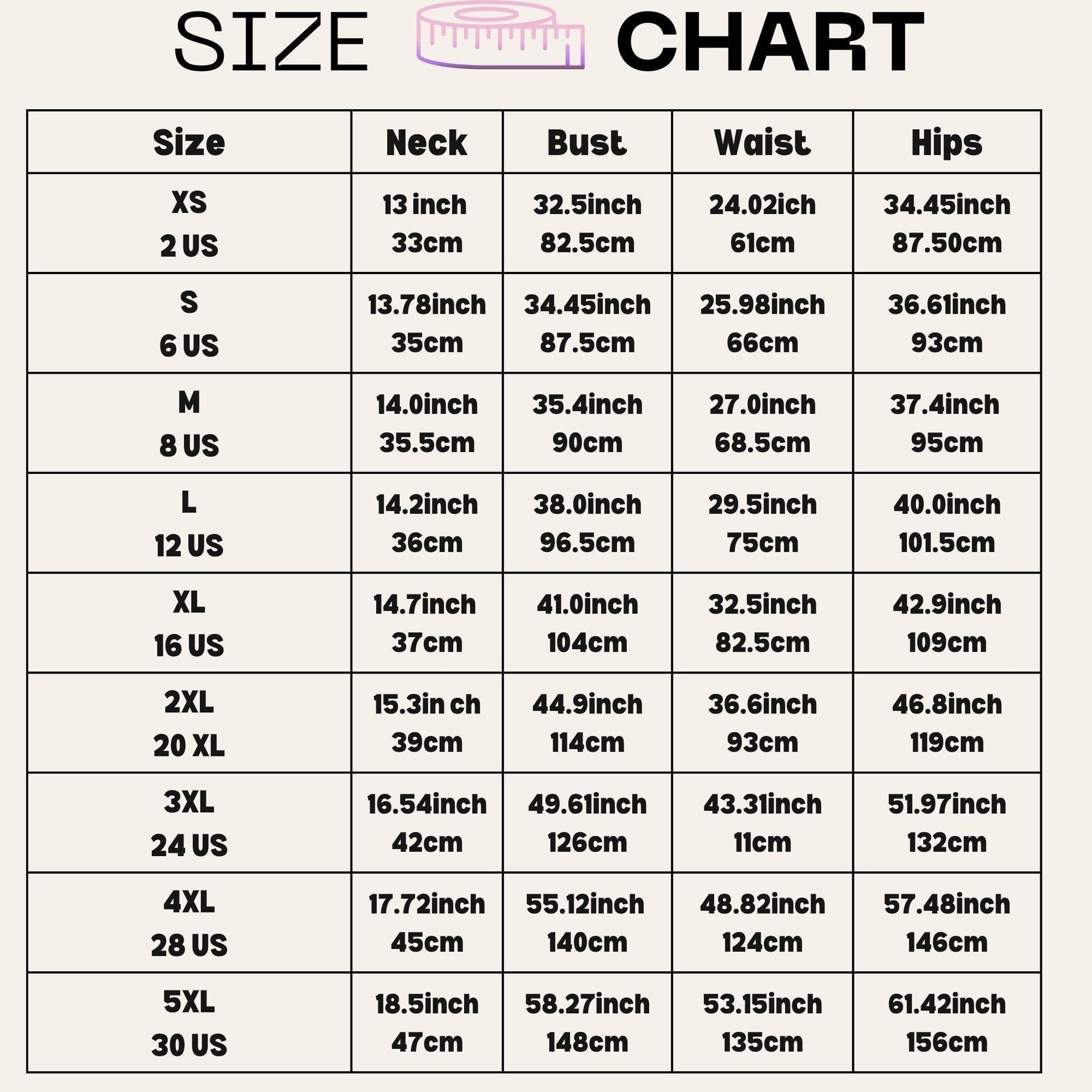 Size: Each pattern includes a range of sizes from XS to 5XL (US 2-30) full sizes and measurements are in the photo variants.